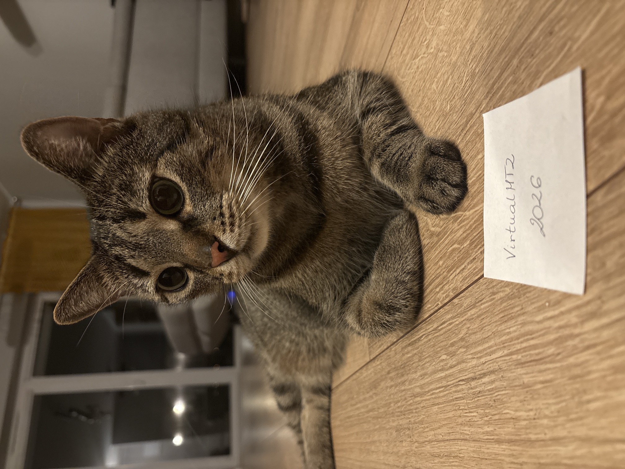 "VirtualMT2 lub VMT2"(napis na kartce/ułożony z czegoś itp.) i rok 2026 chyba, że zdjęcie już ma w sobie ten napis z datą to nie trzeba(na telefonie jest opcja z datą).